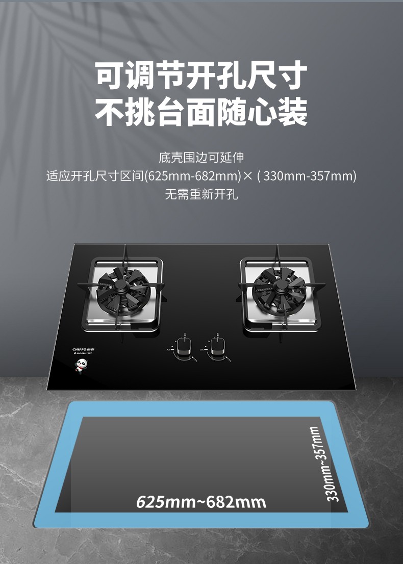 ,兼容更多家庭灶臺(tái)尺寸,換灶無需重新開孔;搭配