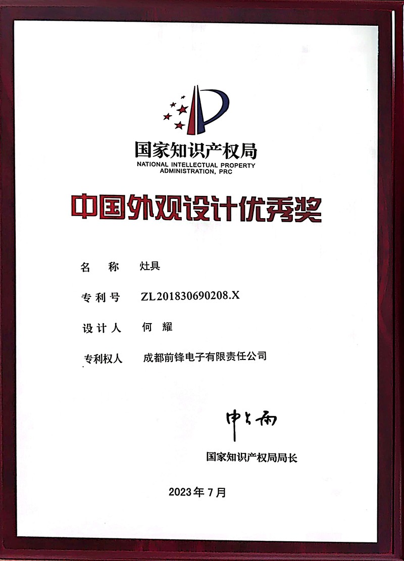 獲得此次中國(guó)專利外觀設(shè)計(jì)優(yōu)秀獎(jiǎng)的燃?xì)庠睿谌肓饲颁h最新的科技創(chuàng)新設(shè)計(jì),并搭載前鋒專利